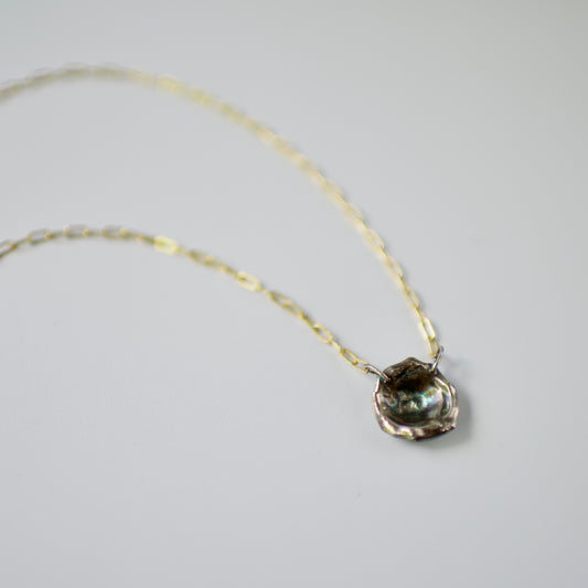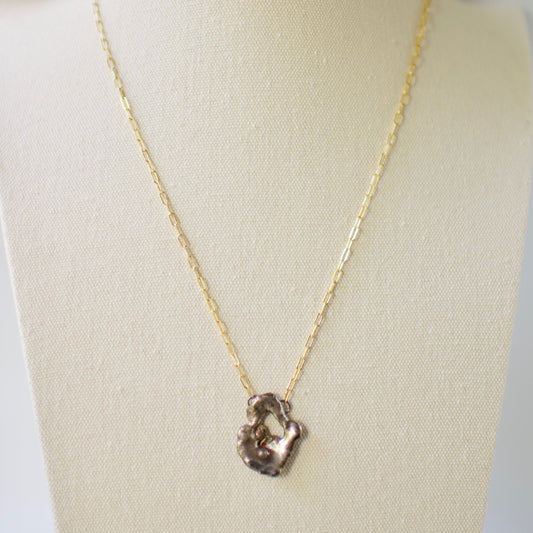 Lake Michigan Formed Sterling Pendant Necklace 5 on 14k Gold Fill Necklace, Oxidized Sterling