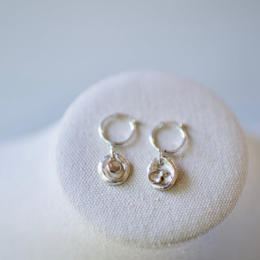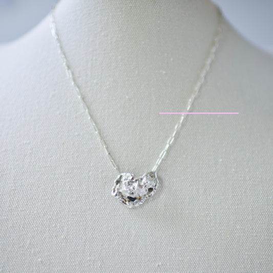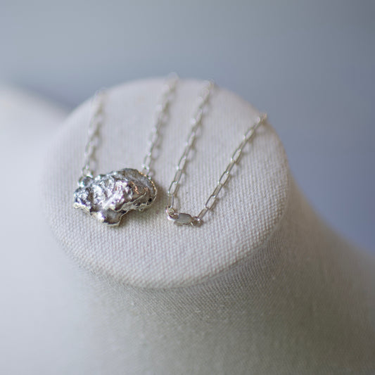 Lake Formed Drops celebrate nature's raw beauty. I harness the primal forces of sterling silver, sand, and the sacred waters of the Great Lakes, or any lake, to create unique wearable sculptures. Through the alchemical process of hand-casting molten metal, I transform these elements into one-of-a-kind pieces that embody both artistry and nature.