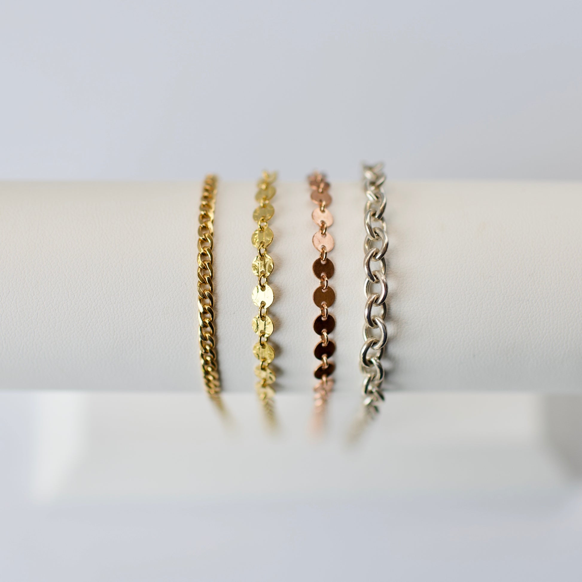 Get a beautiful, endless, chain welded on you permanently, without a clasp. 14k yellow and rose gold fill, and sterling silver available. Chain options do change with availability. I will email you once I receive your order to schedule an appointment, and select your chain style.