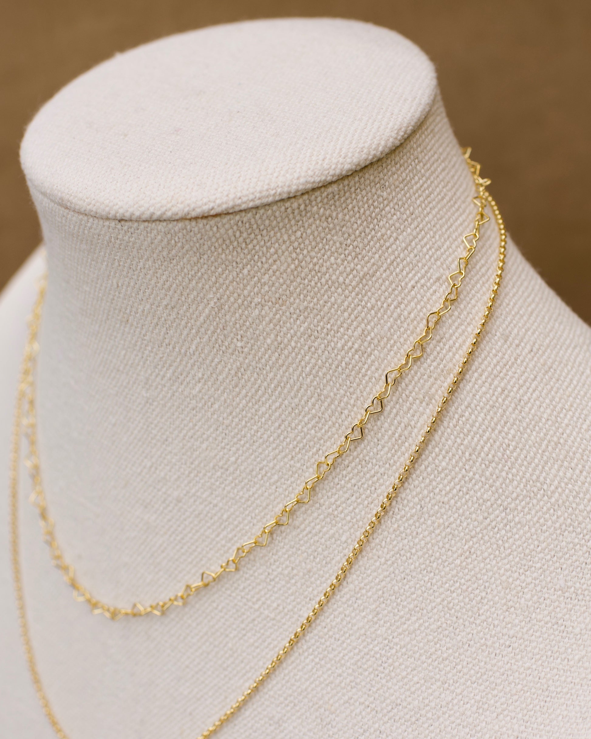 This ultra-fine rolo chain is the epitome of understated elegance. At a mere 1.5mm, the tiny circular links create a beautifully delicate look that practically disappears behind your favorite pendant—letting your charm or pendant take center stage. Rated "Mid" on my chain strength scale, this chain offers reliable durability for everyday wear while maintaining its delicate aesthetic. Perfect for layering or creating that sought-after minimalist look. Paired with the charming 3.2mm Heart Chain for a beautiful layered effect.